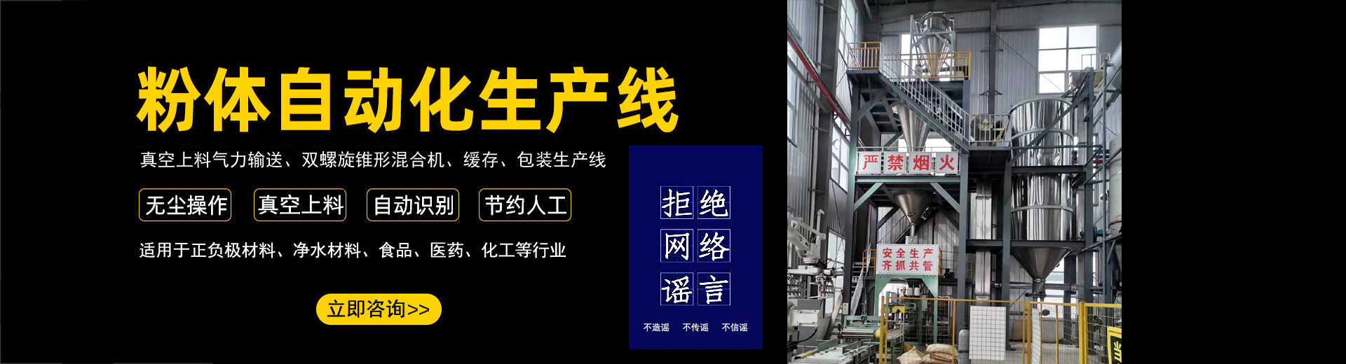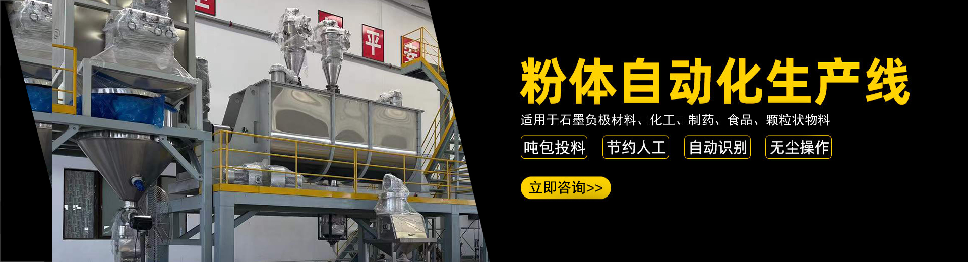公司在制造混合設備和各類機械氣力輸送生產(chǎn)線的經(jīng)驗沉積下,自主開發(fā)了全自動化生產(chǎn)線。實現(xiàn)了自動化拆垛、自動化輸送、自動化配料、自動化秤重混合、自動化篩分、自動化包裝、自動化碼垛一系列全自動化生產(chǎn)線...